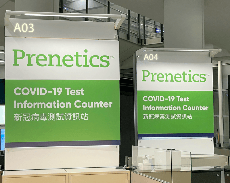 Prenetics 服務櫃檯位於香港國際機場接機大堂A的A03,專為計劃提早抵達香港機場的離境旅客提供檢測服務。