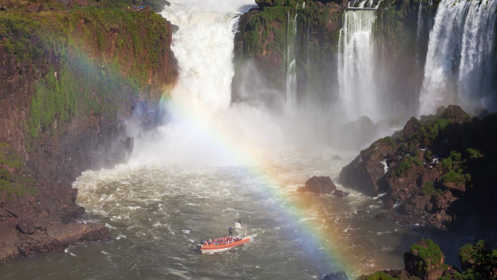 乘坐橡皮艇到達伊圭蘇大瀑布邊緣,感受澎湃水勢。