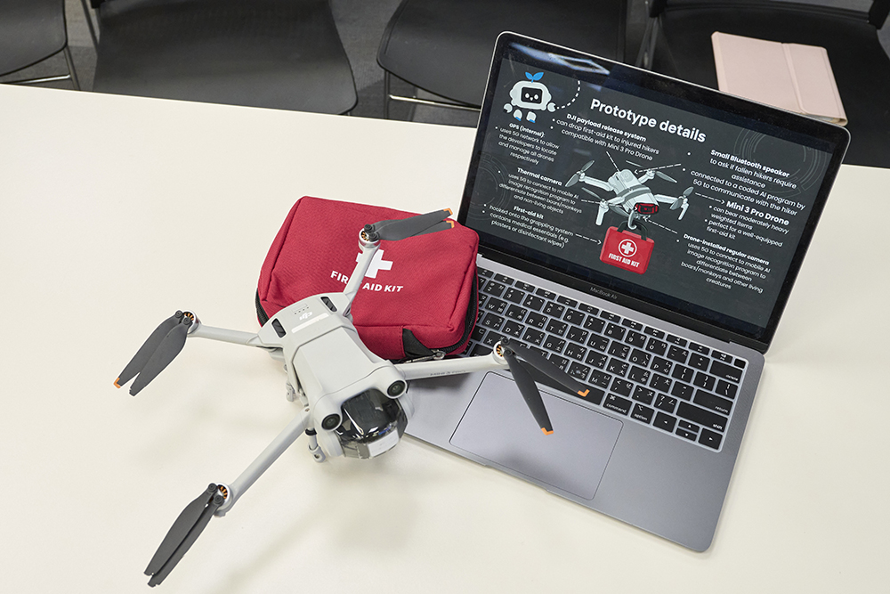 如行山人士不幸受傷,可透過流動應用程式求助,或召喚無人機投擲急救包。