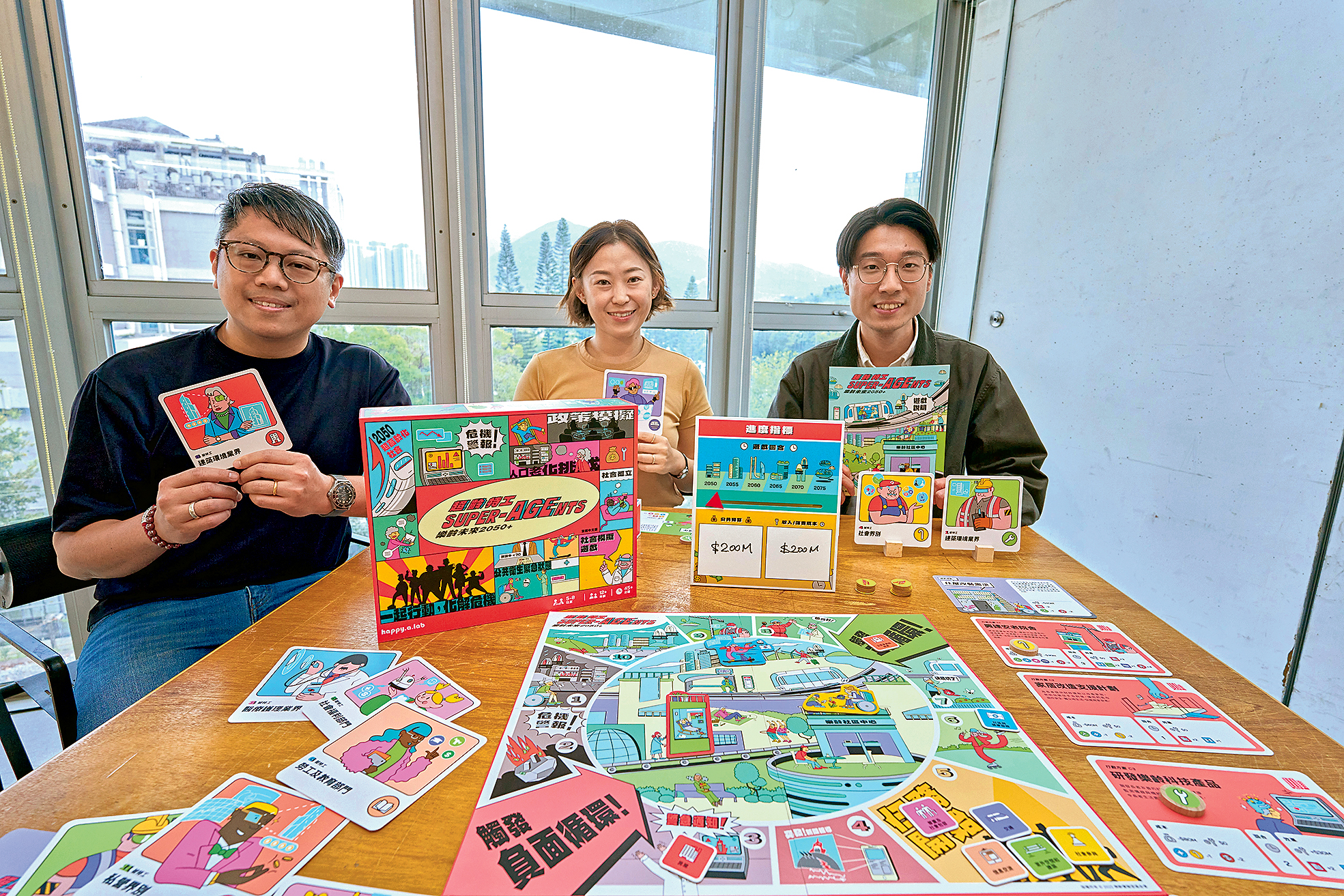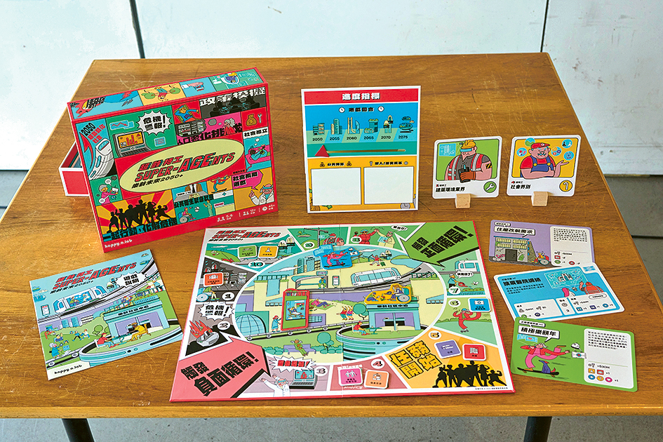 透過中大教學及研究基金資助,幫助團隊進行更多研究工作,加速不同類型的項目落地。去年,團隊設計一款以超高齡社會為主題的《超齡特工TM:樂齡未來2050+》政策模擬桌遊。玩家扮演城市裡的不同角色,例如商界、發展商、社工、規劃師等,透過制定政策與資源分配的過程,體驗不同持份者在城市發展中的挑戰。高級項目主任徐浩然(Kelvin)表示,遊戲設計參考世界衛生組織提出的「長者及年齡友善城市的八大範疇」,讓玩家從公共衛生、城市規劃、建築設計等角度分析問題,進行辯論、投票及決策。