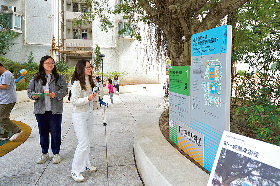 沙田第一城作為首個試點,計劃現已進入第三期。項目經理任健銘(Happy)分享,「我們一共招募了約120位年齡友善大使。他們來自不同年齡層的居民、建築環境專業人士和學生,共同走入社區收集意見、參與改善屋苑環境討論,一起構思設計方案。」在過去數年,團隊成功在屋苑進行多項原型共創點子測試,例如:利用公園原有的白石長椅加裝便捷的遮蔭裝置、共創年齡友善尋路系統,設計方向性路牌、地圖、規劃步行路徑等,鼓勵居民探索社區,建立健康的生活方式。Happy認為,項目具備意義,不但把持份者的需求和創新想法連結起來,更帶動居民參與設計,共同建立跨代共融的美好居住環境。
