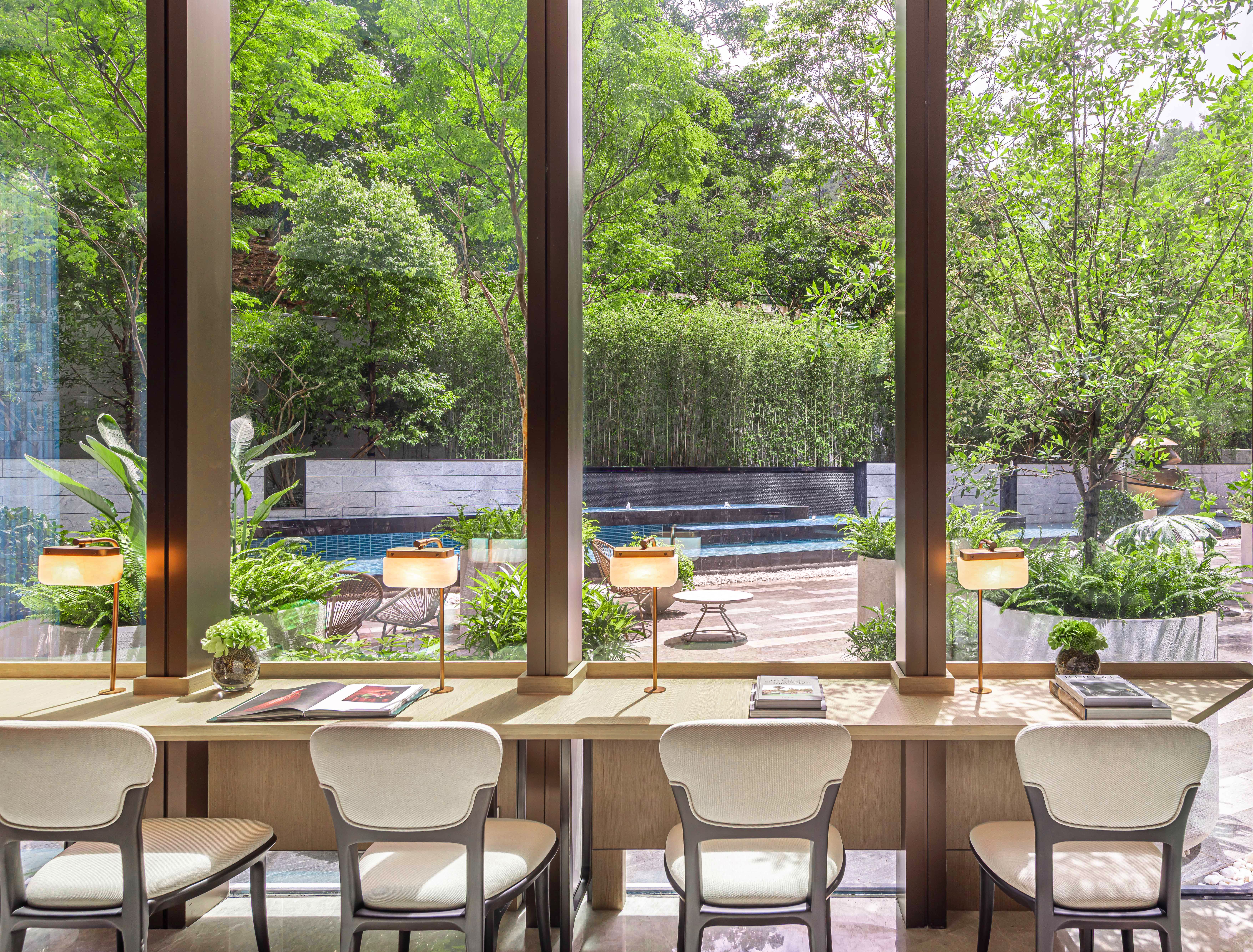 發展商最近開放全新擺放傢俬現樓示範單位,該單位為2座38樓B室,實用面積466平方呎,屬兩房開放式廚房間隔。客飯廳及睡房開則方正實用,並採用大面積玻璃窗,將翠綠山景引入室。客廳同時外連露台,採納天然光綫,令單位更見明亮。客廳擺放米白色布藝梳化及木質小茶几,配合牆身的藝術掛飾,營造品味高雅的氛圍。單位開放式廚房以曲尺工作枱面設計,設備齊全,提供一系列歐洲品牌家電如V-ZUG、Mia Cucina、De Dierich等,方便住戶日常煮食。單位廳房同向,同樣可以看到翠綠山景。主人睡房面積相當寛敞,擺放雙人床及衣櫃後仍有充足空間走動。設計師巧妙將另一房間規劃成書房用途,既滿足收納需求,又為住戶提供安靜的工作學習空間。項目全線單位配備SAMSUNG智能電子門鎖,貼心照顧生活每一項細節。